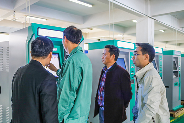 在參觀生產(chǎn)車間和幾條主要產(chǎn)品生產(chǎn)線、親身體驗豐富多樣的自助設(shè)備互動演示后,視察人員均對神思旭輝先進(jìn)的生產(chǎn)技術(shù)給予了高度肯定,尤其是新款銀醫(yī)自助設(shè)備以其精美的外觀設(shè)計、完善的功能模塊贏得了來訪領(lǐng)導(dǎo)的一致好評。